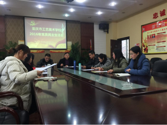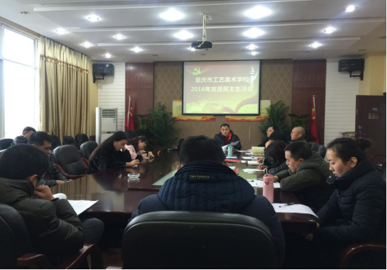 2017年1月9日,中共重庆市工艺美术学校支部召开2016年度民主评议党员会,会议由书记王曦川主持,全体在职党员参加会议。