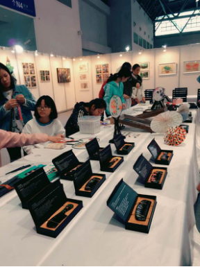 活动现场人山人海,我校展台人头攒动。展示的工艺品受到了现场领导及民众的一致好评,原创服装作品通过模特在T台的演绎,展现了强大的时尚力量和艺术创作力量,带来了不一样的视觉冲击。