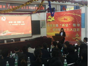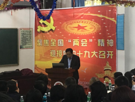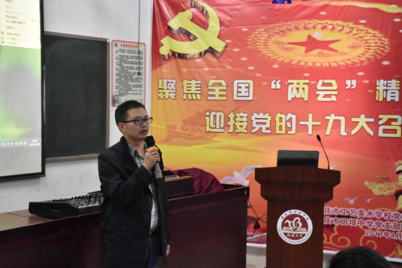 随后,中共重庆市工艺美术学校支部支委委员、校长王平讲话。王平校长通过“从两会看大国自信、从两会看节俭治国、从两会看科教兴国”三方面交流了自己的感受。他指出并相信,从党的十八大以来,在四个全面战略、五大发展理念的指引下,全党同志自觉增强政治意识、大局意识、核心意识和看齐意识“四个意识”。在以习近平为核心的党中央领导下,中华民族一定能够实现美好的中国梦,九龙教育也一定会更加辉煌灿烂!