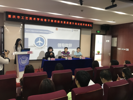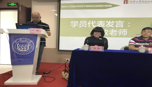 重庆市工艺美术学校骨干教师综合能力提升培训班在同济大学科技园举行了隆重的开班典礼,同济大学职业技术教育学院师资培训部梅泓主任、同济大学职业技术学院唐东平校长分别致欢迎辞,介绍了学院的发展历程,并与老师们热情交流。