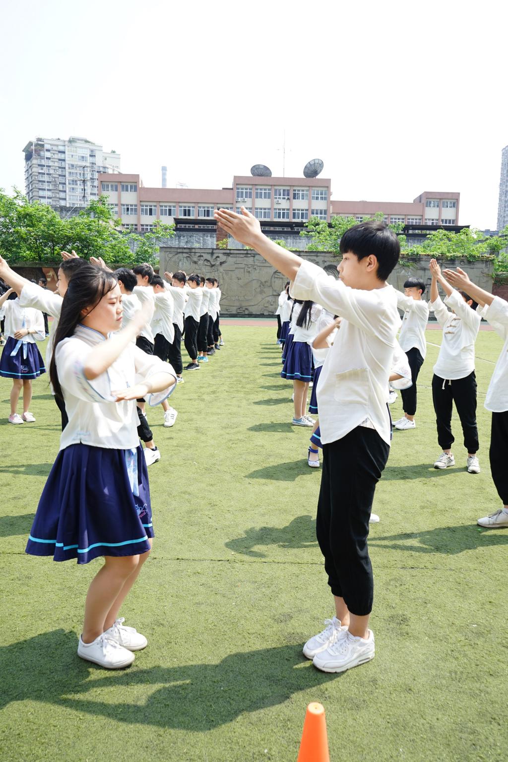 本次比赛由校团委组织,35个班级参加,全体同学经过刻苦训练和精心设计,展现了我校学生活泼大方、健康向上的良好风貌和团结一致的集体精神。洁净的服装、优美的舞姿,整齐的步伐,青春洋溢的脸庞,让每个参与的孩子懂得坚持、体会温馨、感恩合作,见证自己的收获与成长!